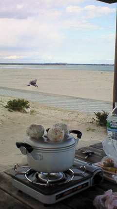 キャンプしていたスタッフMとお客さん達と合流。天気が良くて波は腰くらい。