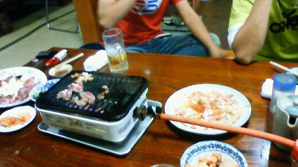 台風の影響で海は中止。昨日の夜は毎週火曜日仕事が休みのお客さん達とS君が良く行くうわさのホルモン屋へ。