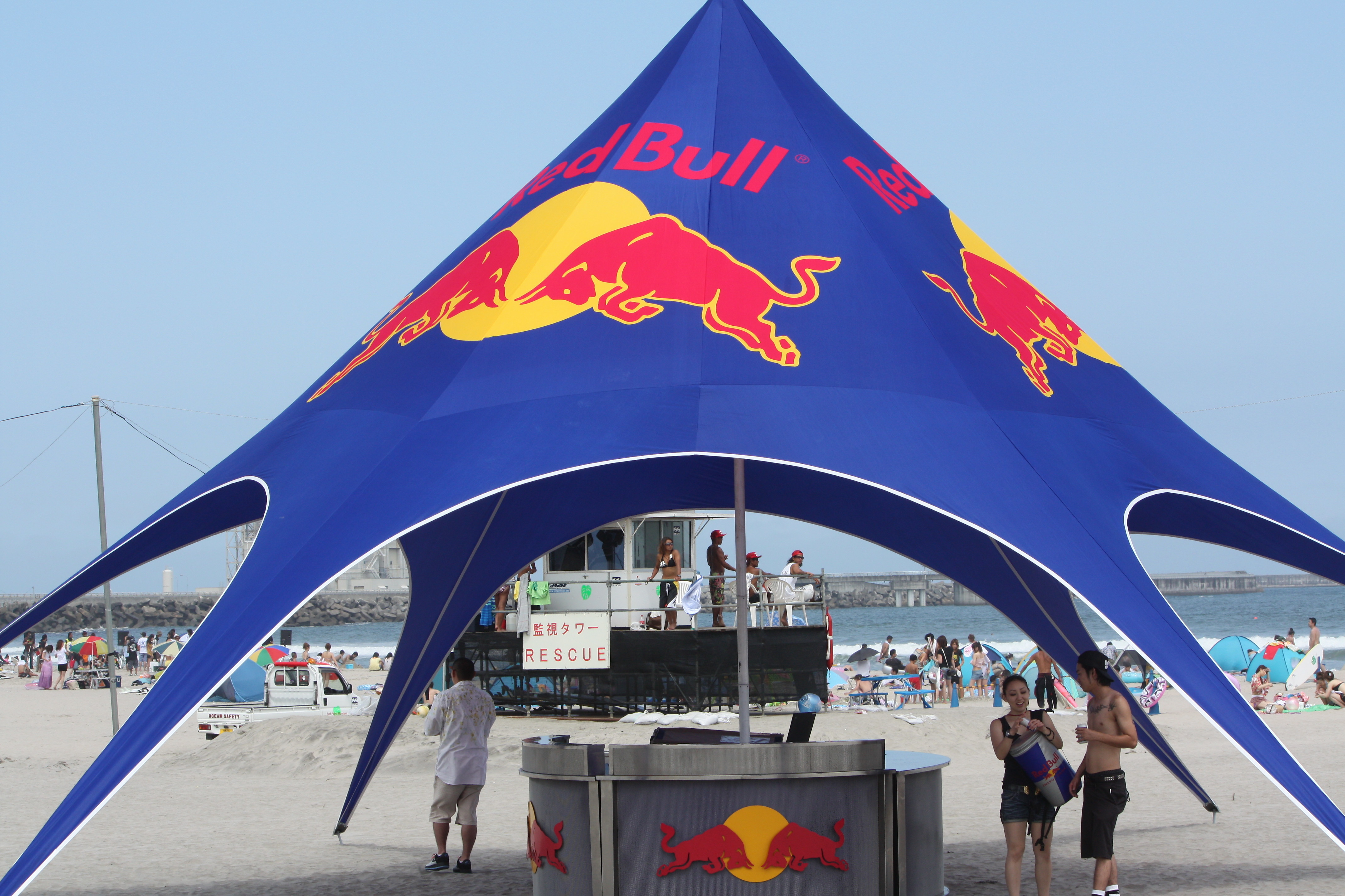 サマーフェスタ開催中で色々な屋台やライブ、スケートランプ、ビーチバレー等沢山の人であふれていました。
