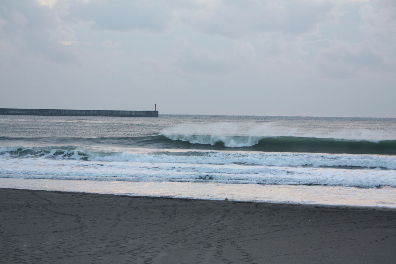 サイズも落ちついて遊べる波でした。海はいい天気だったけど、内陸の山は雲に覆われていて雪が降っているようです・・・