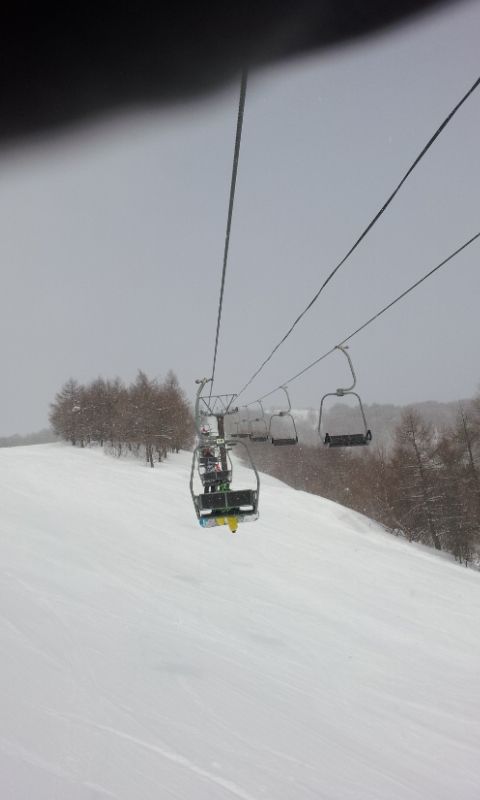 山頂は視界が悪かったけど、やっぱり雪質はイイ!膝下だけど、パウダーゾーンが残ってて3本程いただきました。