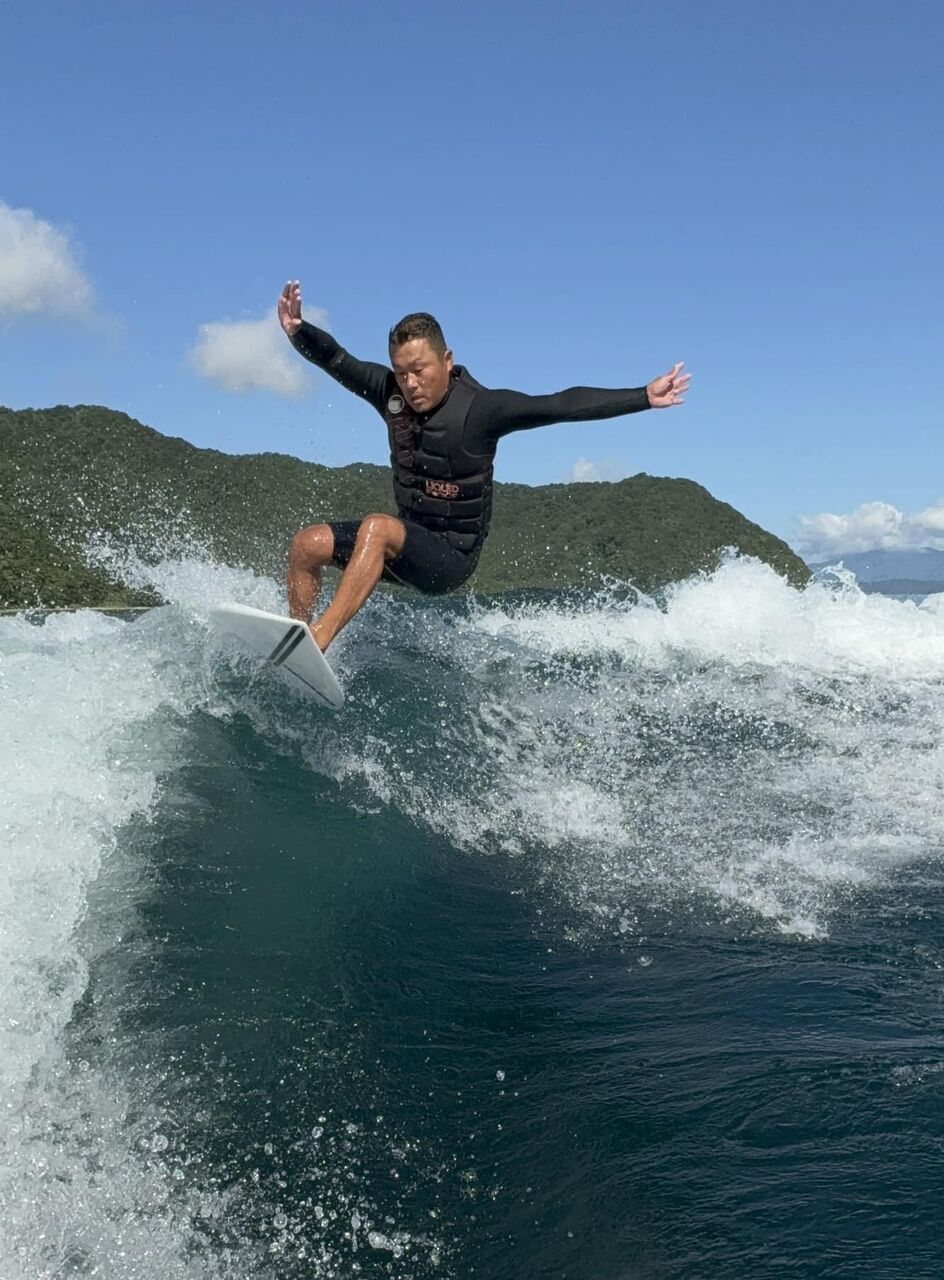 今年の夏から継続しているお客さんとマンツーマンでサーフレッスン。