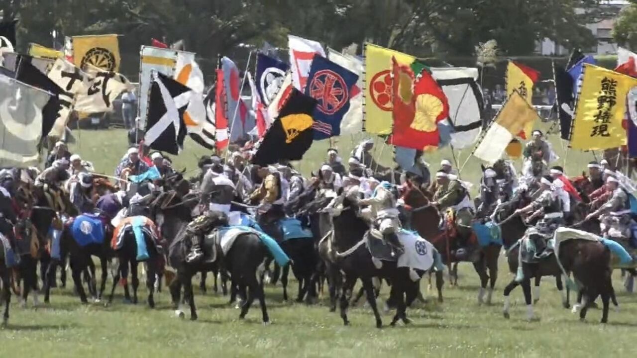 1000年以上前から続く祭、相馬野馬追の初日(3日間続く)だったので、馬に乗った複数の騎馬武者と道路ですれ違う。