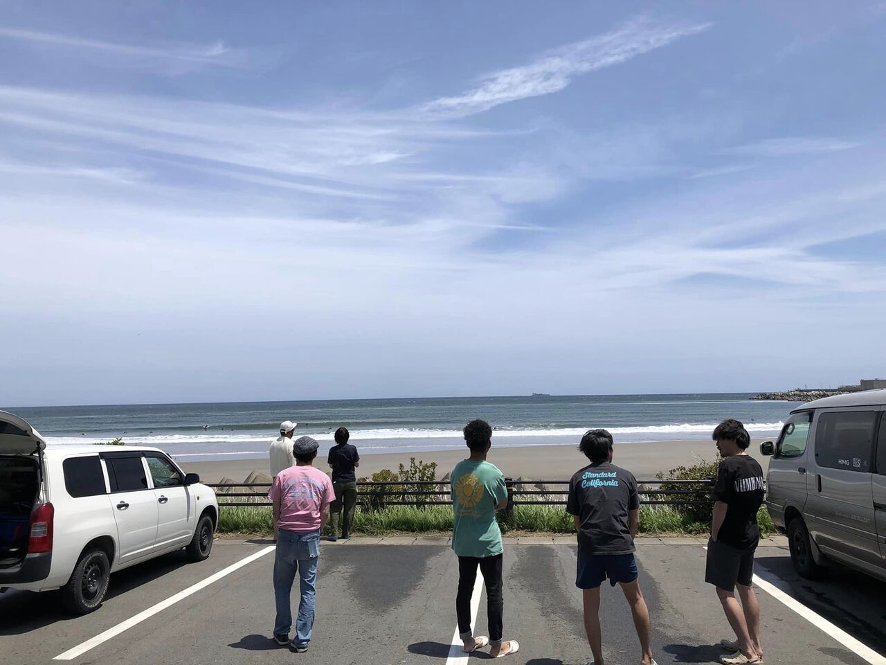 海から上がって着替えを済ませ波チエック。