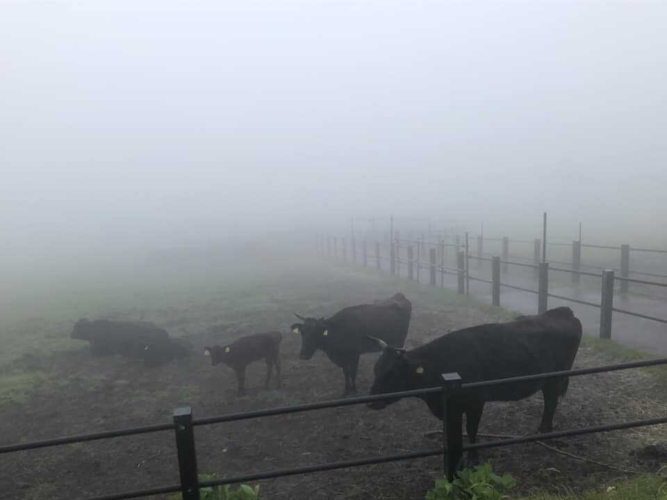 観光にと、八丈富士へ行っても雨と霧と強風で何も見えず、ちょんこめ(子牛の愛称)だけ・・・