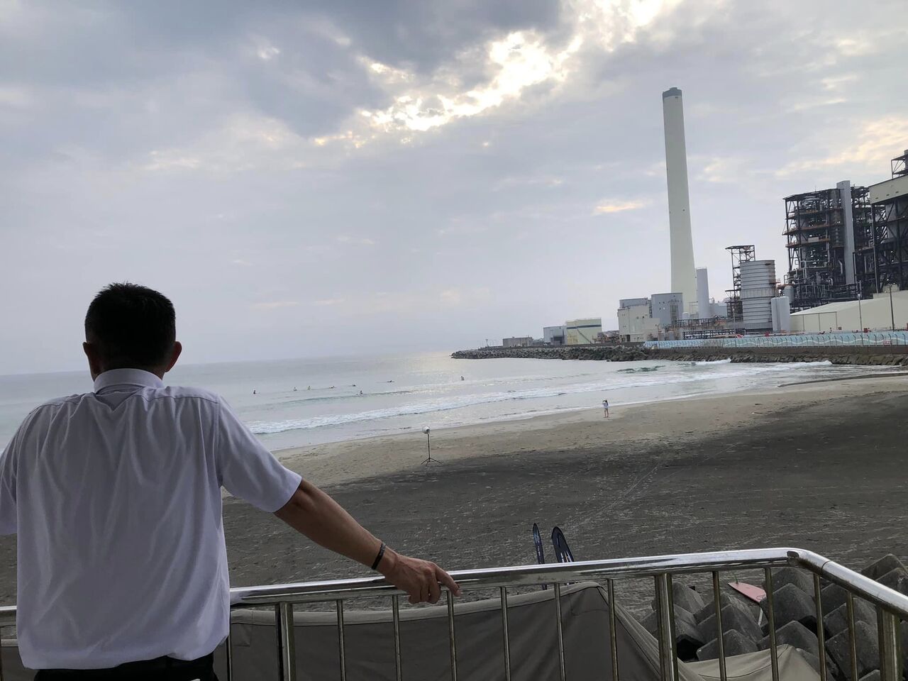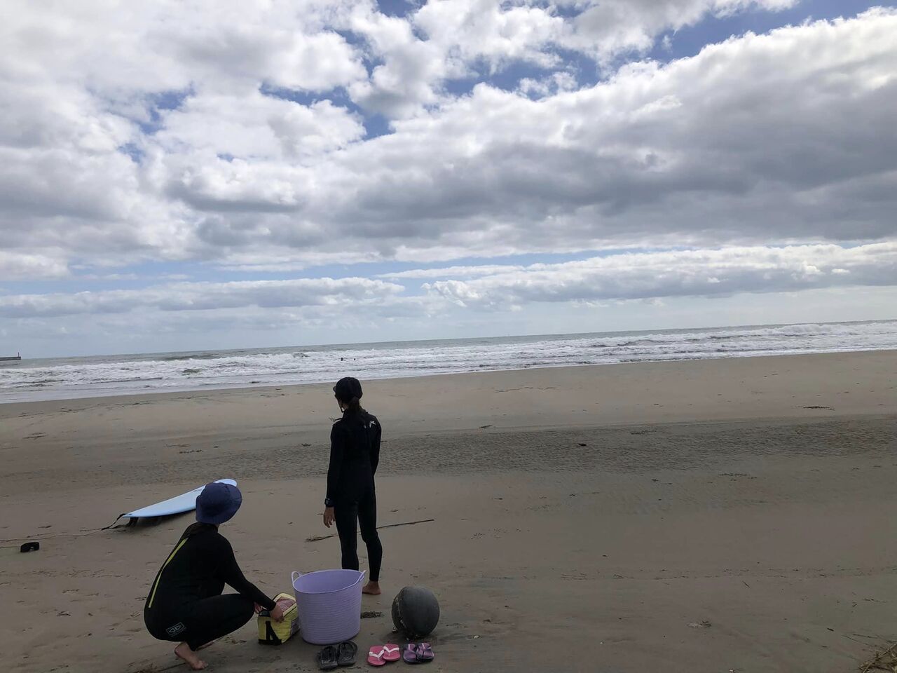 初めてのサーフィンなので、できるかどうか波打ち際まで歩いて波を見て判断。