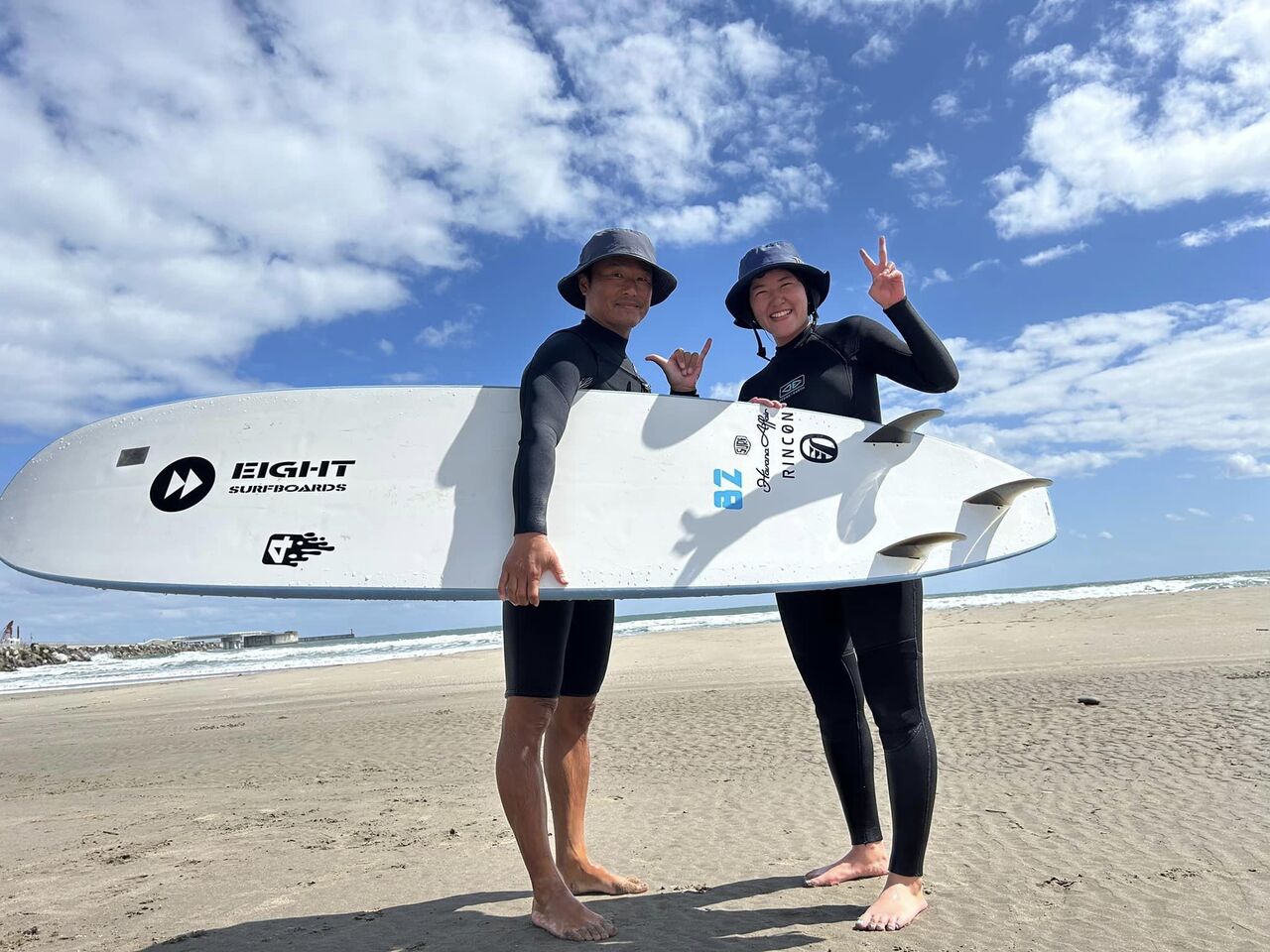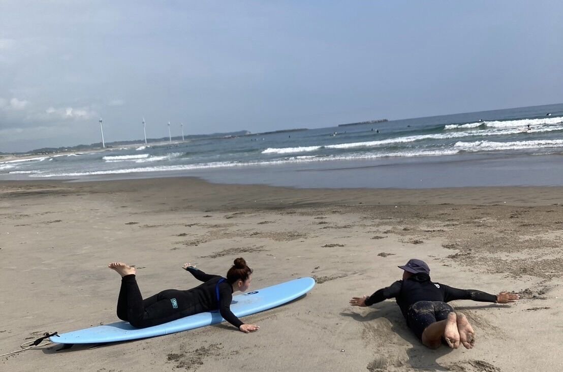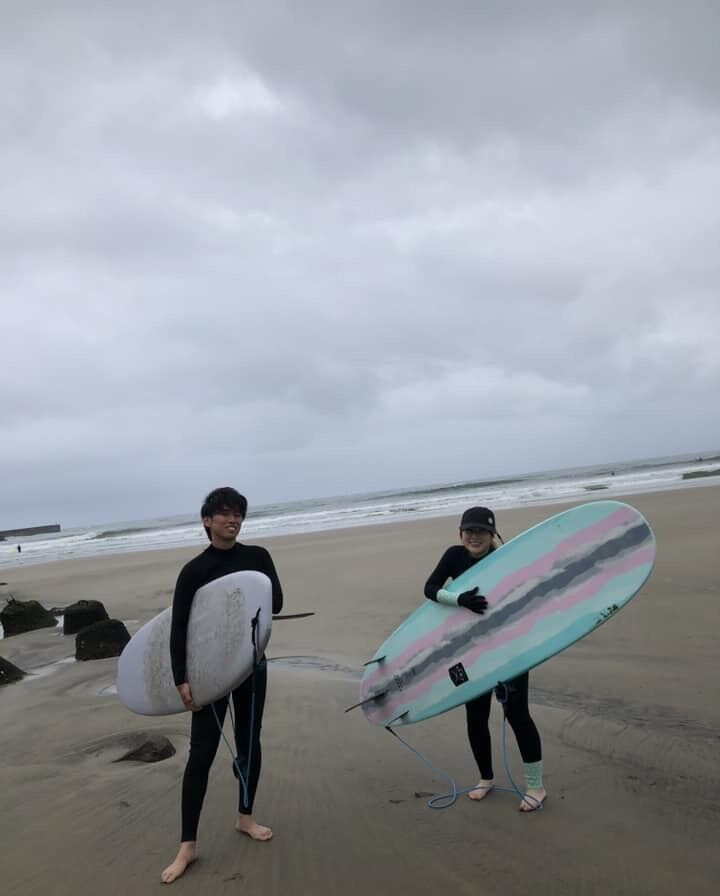 今日は山形から遊びに来た夏休み中の大学生とレンタル付きサーフィン体験スクール。