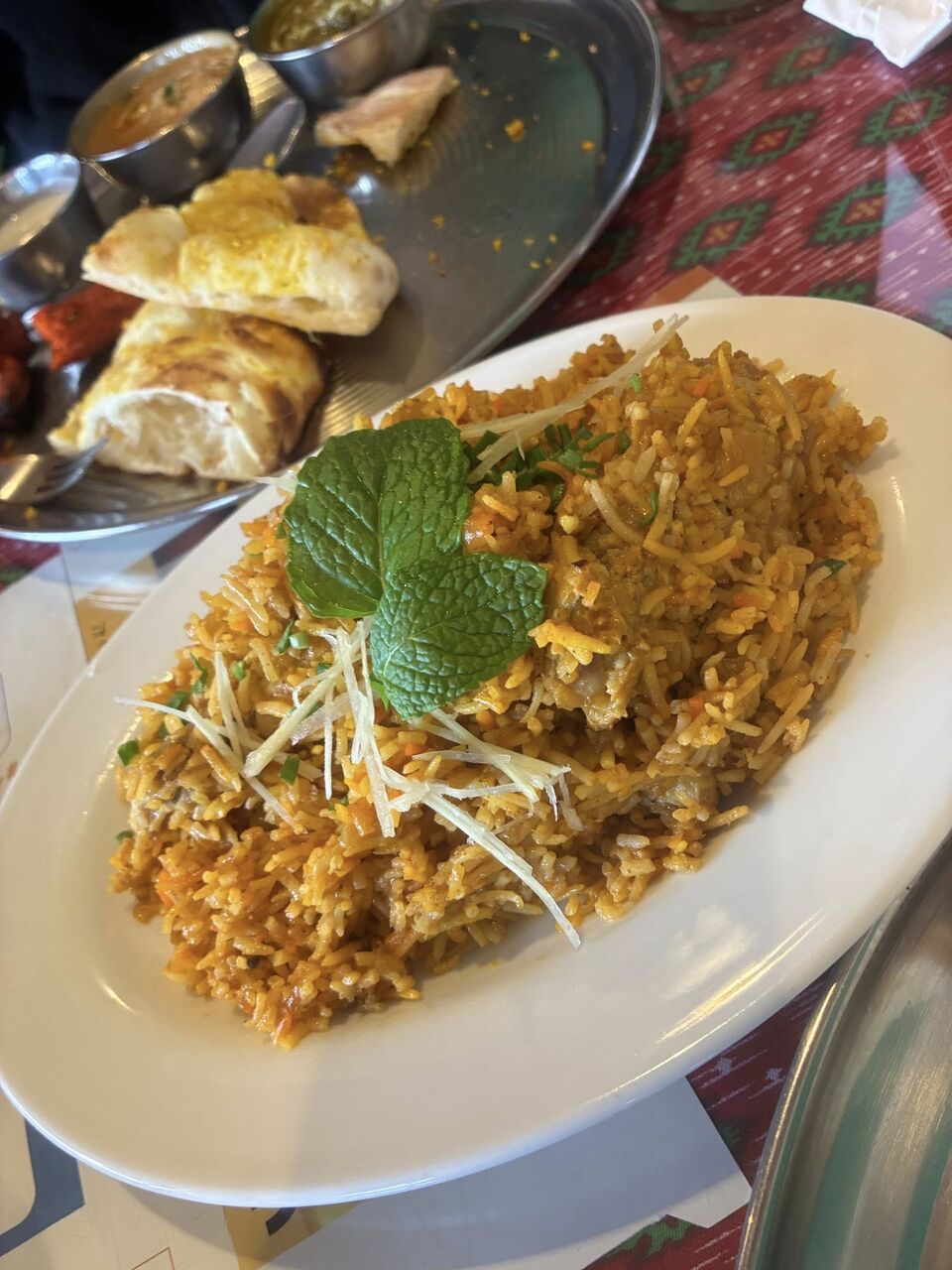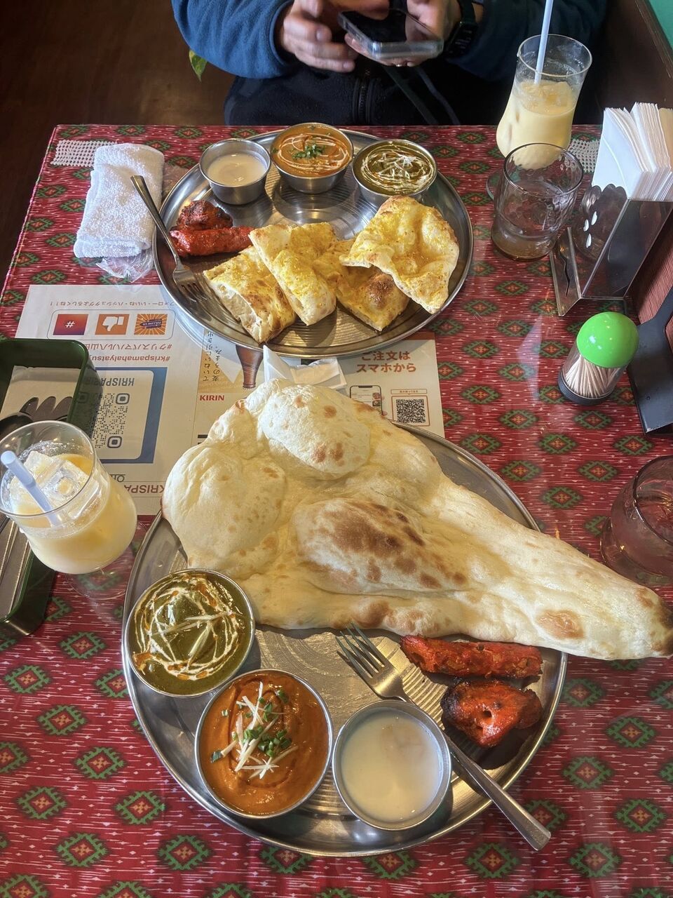 1人一つカリー&ナンのランチセット、チキンビリヤニをシェア、さらにお代わりナンで腹パン。