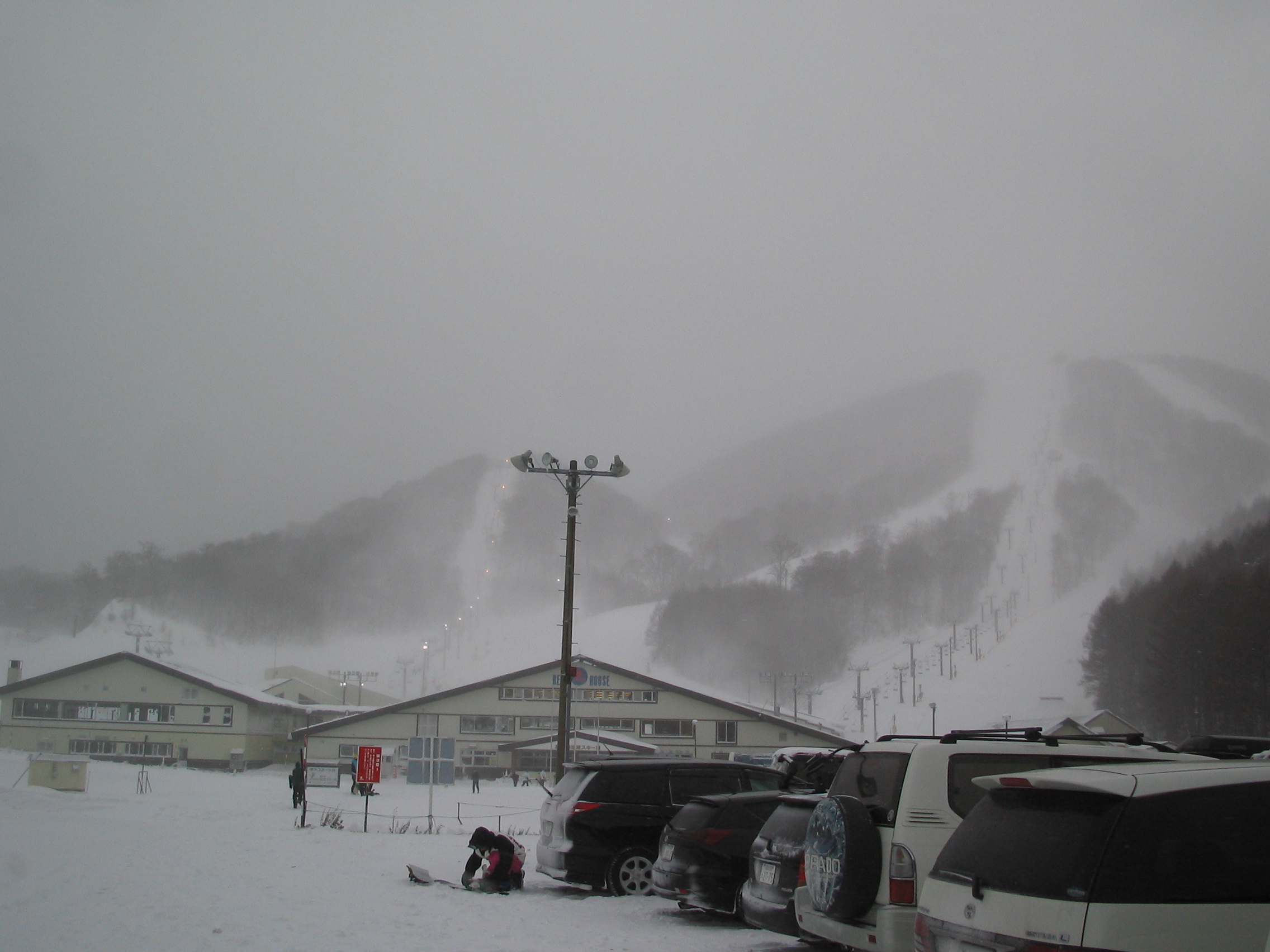 強風と大雪の為、リフトは一つしか動かなく、人が集中。